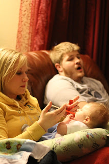 Last week, Lacey and my mother in law took Blake for me for the day. When I came by my in-laws to pick him up, Popi (my father in law) was on the floor with Blake reading him a book. I quietly snuck behind them and sat on the couch until he finished. Once he was done with the story I quietly said "Blake", he starts looking around and looks at my father in law like "where is she? I hear her!" he turns him around to face me and he immediately hold his hands out and starts to whine for me to pick him up. And yesterday, Rowdy went in to get Blake when he woke up for the day and he bawled and bawled until he handed him to me, then he was perfectly fine and smiling at his daddy. I feel bad because Rowdy feels bad, but at the same time it's nice to know he trusts me and feels so safe with me when for so long, I wasn't able to do anything for him. I was jealous of everyone that they got to change diapers and feed him and play with him while I sat there or slept. Blake also started to laugh every time someone else started to laugh, he found it hilarious. We were expecting some teeth to be popping through since he has been chewing on EVERYTHING since he was about 4.5 months and drooling like a faucet, but nothing came in, still toothless!